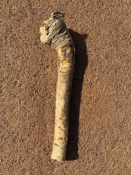Have you ever made fresh horseradish sauce? It’s easy to do with fresh roots, a blender, and some vinegar. If you get a root from the grocery store, examine them to look for a crown that has some sprouting buds or leaves on it. Once you get it home, Cut off the crown about a half inch to an inch.