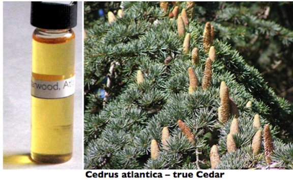 INTERESTING INFORMATION ~ The Cedar tree was used by other ancient cultures for sarcophagi and palace and temple material. Sometimes called ‘satinwood’. The Latin name means ‘Atlas Cedar’, that is, the tree growing in the Atlas Mountains that span Morocco and Algeria. Different species of cedars are found all over the world. [in the book, essential aromatherapy, p. 122, there is a sentence that says, “Native Americans use the cedar as medicine and burn it for purification”,” and this is woefully incorrect as this book is confusing American ‘cedar’ Juniperus virginiana with the true Cedar, Cedrus spp.].