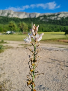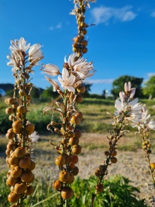 Not much to go on at that point. A couple of hours later we were eating our picnic dinner on the glorious fields outside the hostellerie, excited to be at the foot of the mountain that holds the sacred mountainside cave chapel, dedicated to Mary Magdalene and the way of the heart, knowing we would climb it the next morning. Bathing in the last warm rays of the sun and the sheer magic of the place, I spotted the same large stalks covered in the round green seed pods growing just a few feet away. As I walked towards the clump I realised there were plenty of plants with white star like flowers still blooming, right at the top of the stalk. A few days later and they might all be seed pods, I felt blessed to be able to sit with the flowers and immerse myself in their environment. The ground on this high plateau is rocky, thin, well drained and very hot in the summer yet cold and snow covered in the winter. Many photos were taken so I could get a really good sense of the plant. A few days later I started looking in earnest for its name and eventually it was revealed – it was White Asphodel, Asphodelus Albus to give it its Latin name. When I encounter a new plant that has ‘called’ to me and then eventually learn its name, my heart sings out with sheer joy. This particular plant felt significant on first sight but only after reading about its history and the mythologies surrounding it did I realise why.