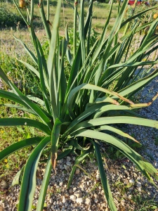 This pilgrimmage in the footsteps of Mary Magdalene and the path of the Divine Feminine did not dissapoint! On arrival at the beautiful Hostellerie de la St Baume, a monastery run by Dominican Brothers, I was immediately struck by the profusion of lush green May foliage and flowers. There were some very familiar faces such as Red Clover, Ribwort Plantain, Poppies and the like but one leapt out as really interesting, enough to stop the car and investigate. The plant that caught my attention had a cluster of upright green sword like leaves coming from a rosette at the ground with a large tall flower spike that was covered in round green seed pods. With no flowers around to look at, it would be hard to find its name without a sense of the flower. I took some photos of the leaves and seed pods and jumped back in the car.