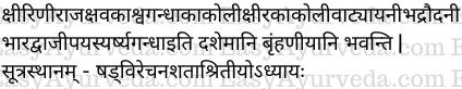 Charaka Samhitha – Brhmaneeya dashemani (Sutrasthaana 4th chapter), Madhura Skandha (Vimaana sthaana 8/139)
