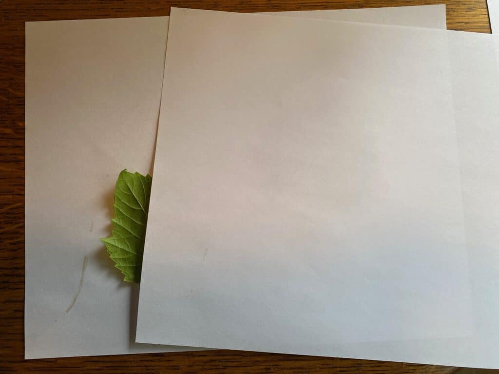 Place a second sheet of paper over the first sheet to cover the leaves.