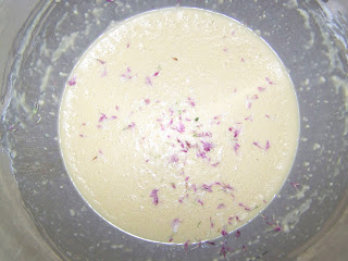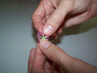 Pluck out the small purple petals. (You can eat the whole flower head, but I only use the little petals for this.  The green part is a little crunchy 🙂 )