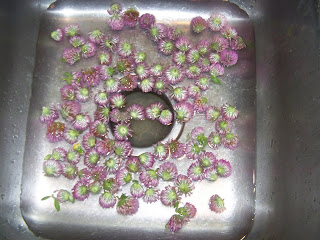 Pick the heads off the flowers – just as many as you want to use. The flowers that are more purple are better!